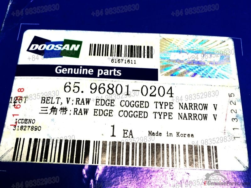 BELT,V;RAW EDGE COGGED TYPE NARROW V. 65.96801-0204 1535 2-3V595. 1SET=2EA.