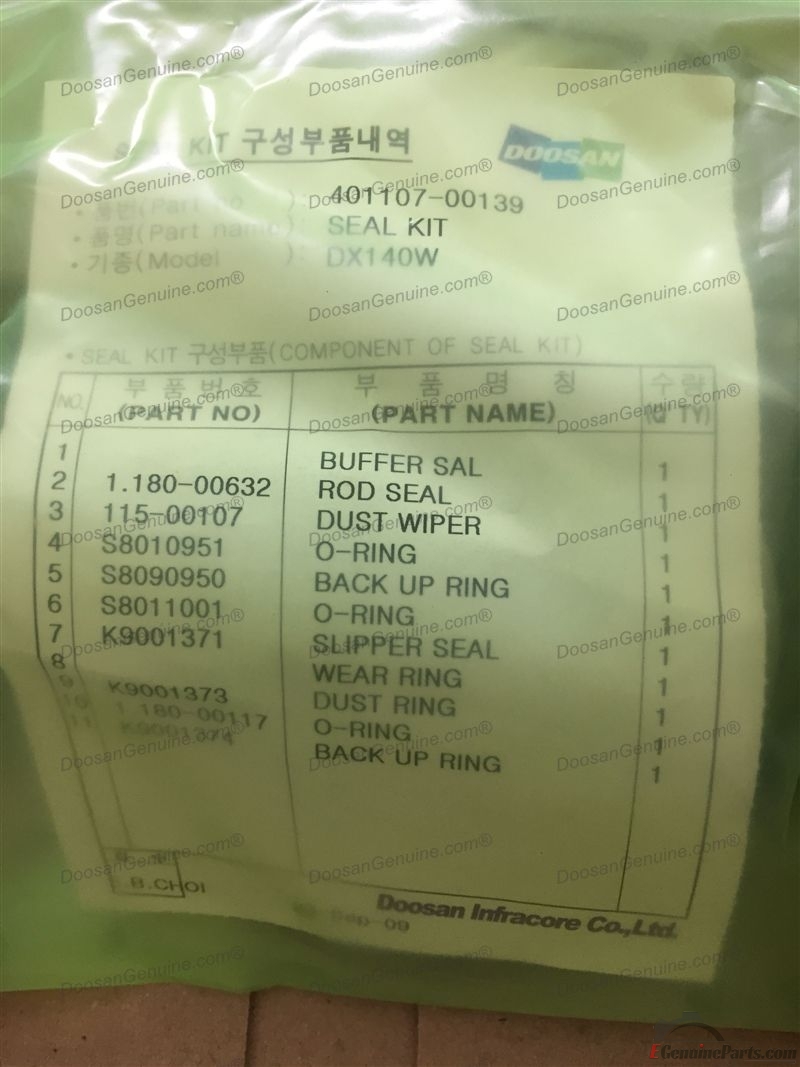 SEAL KIT;DOZER CYLINDER FOR DOZER CYLINDER - L.H/R.H DOOSAN DX140W ACE / DX140W ACE PLUS / DX140W TIER-II / DX140W TIER-III / DX140W-5 / DX140W-5K / DX160W-5K / DX140WA (CEWAB,DI,DOM).
