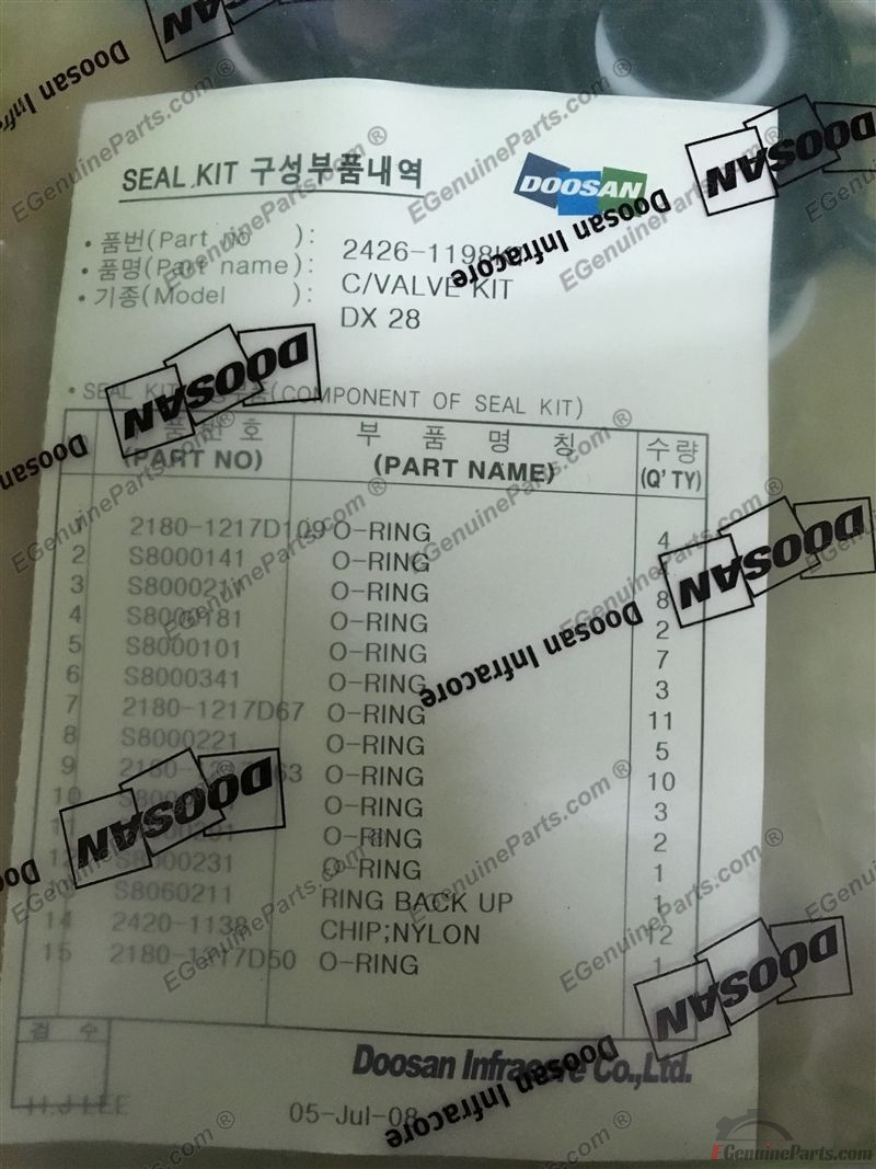 SEAL KIT FOR CONTROL VALVE DOOSAN SOLAR 200W-V (HEWM0,DI,DOM) ~ SOLAR 360LC-V (HELR0,DI,DOM).